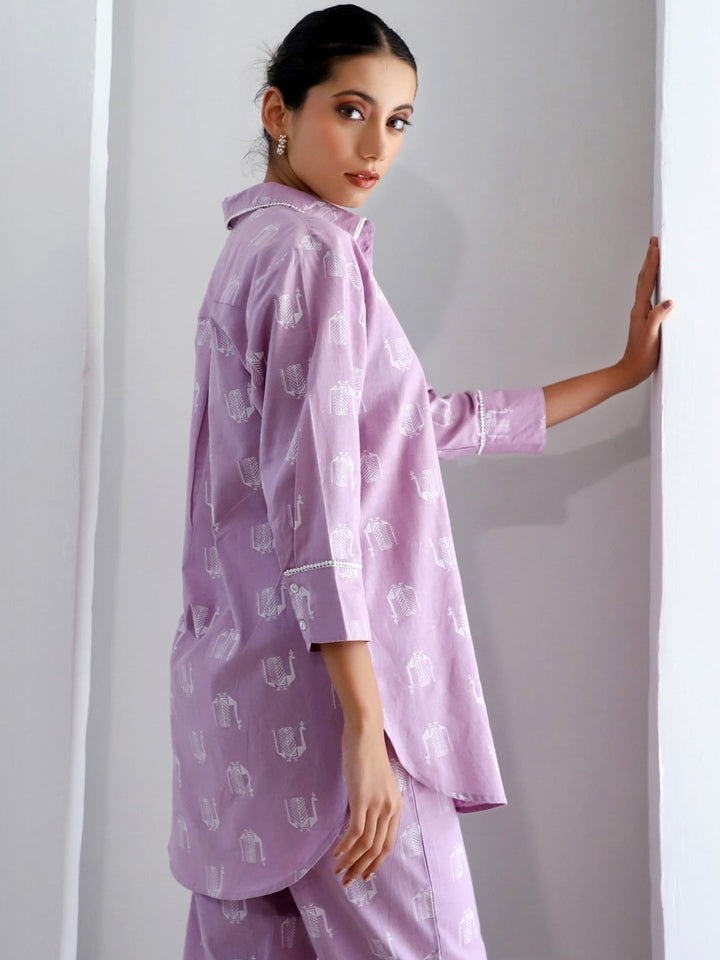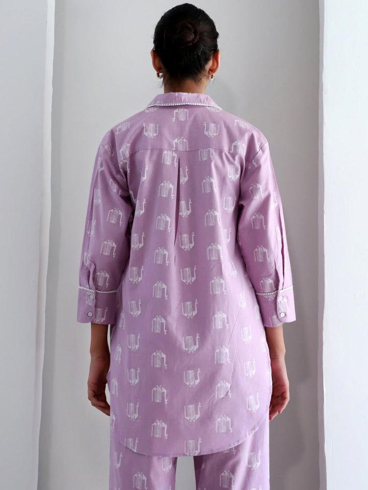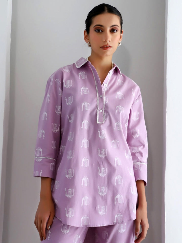 Ethnic Motifs Printed Pure Cotton Shirt Collar Tunic With Trousers
