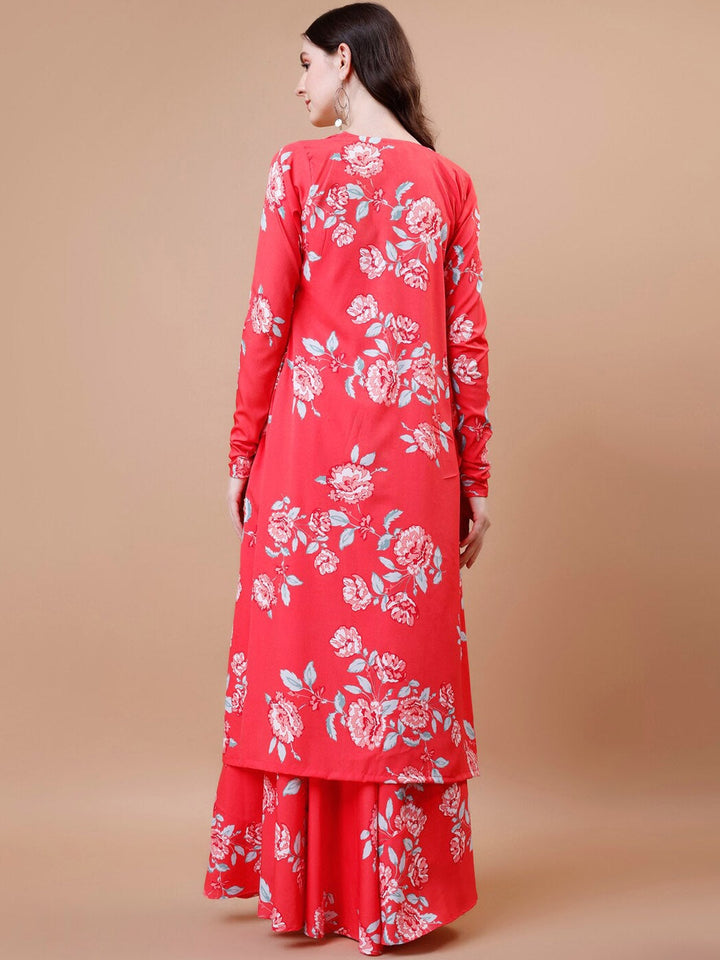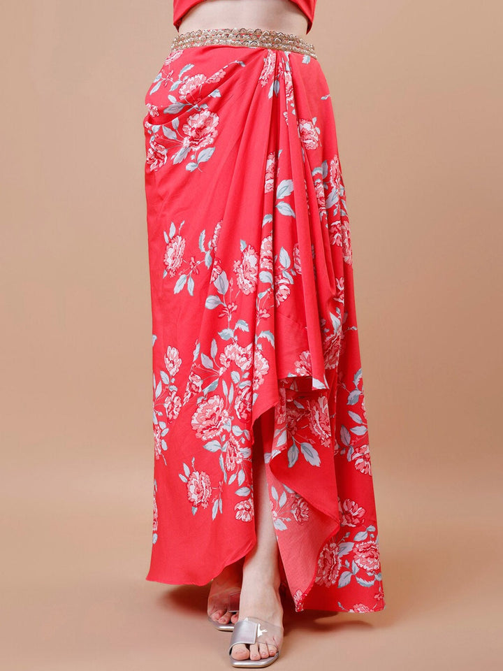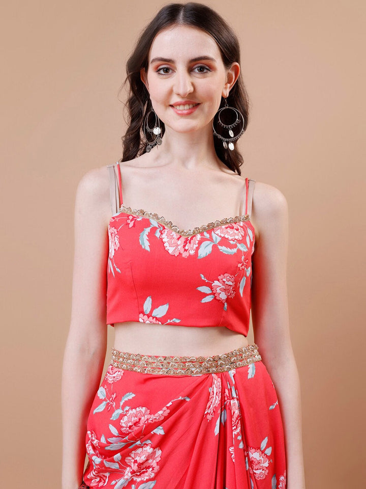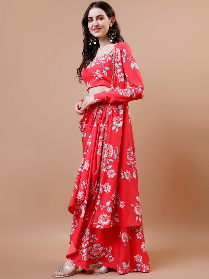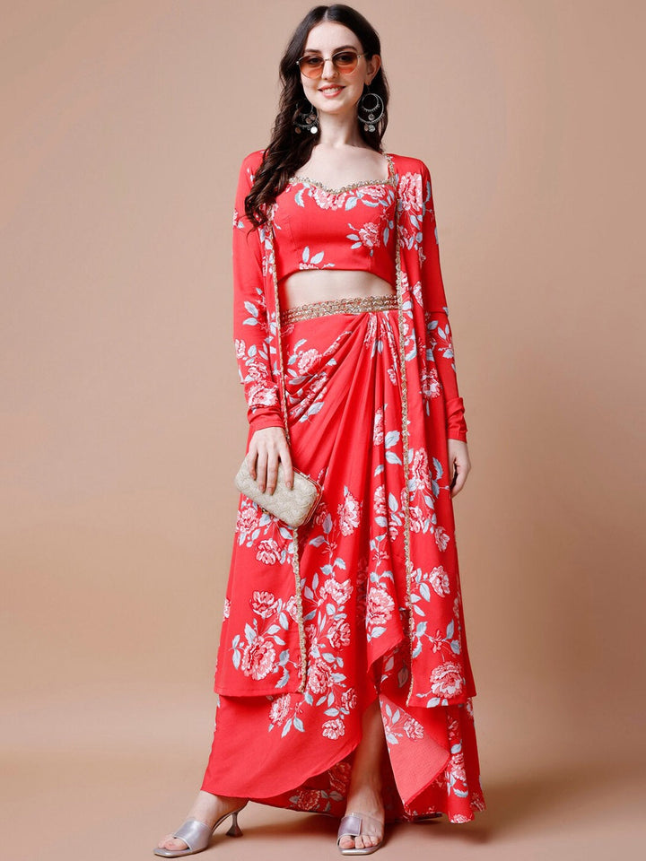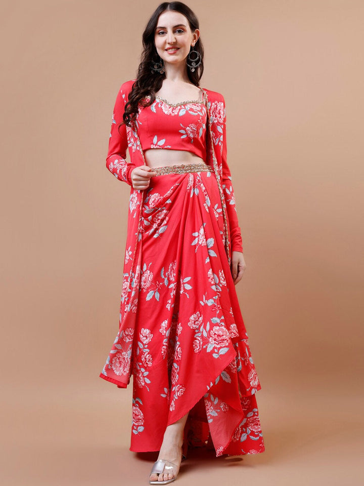 Floral Printed Crop Top, Skirt & Jacket Ethnic Co-Ords