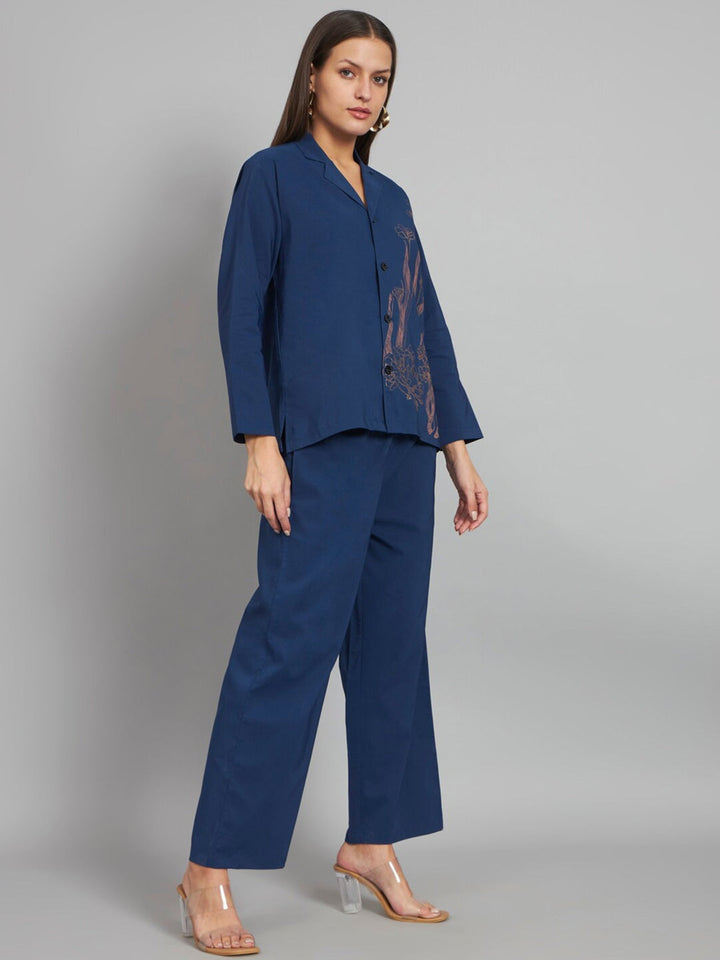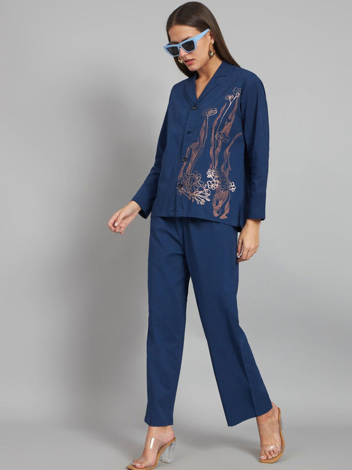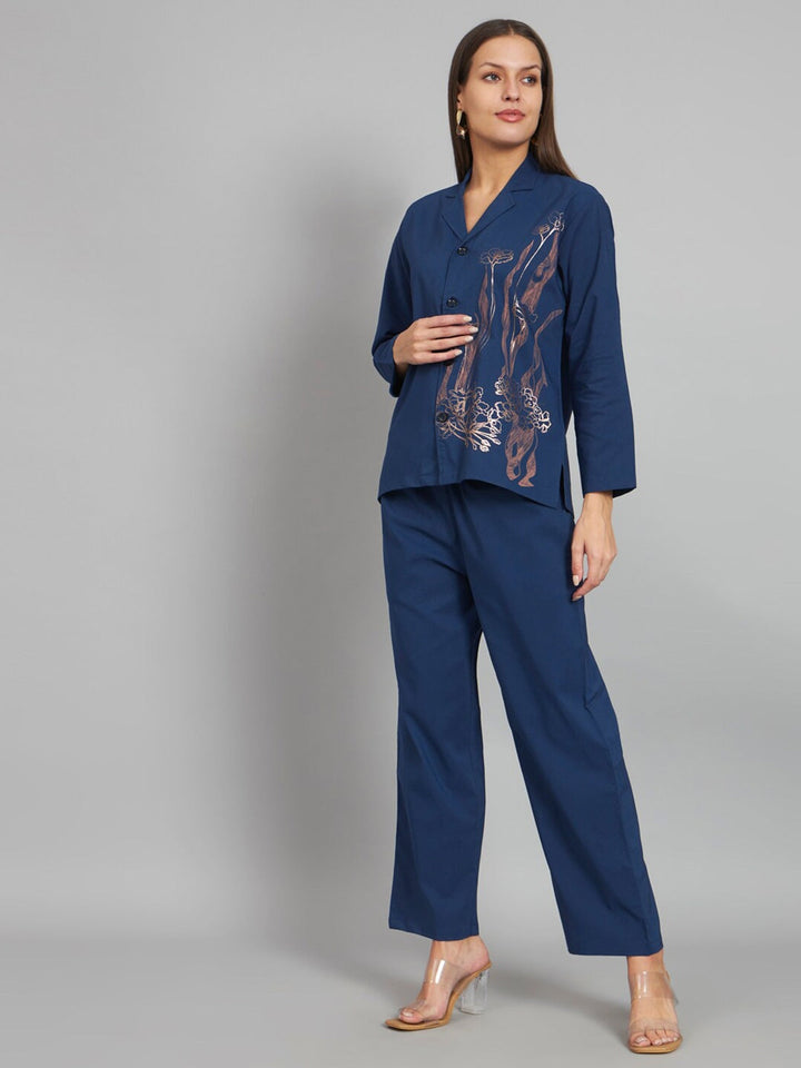 Floral Printed Lapel Collar Shirt With Trousers