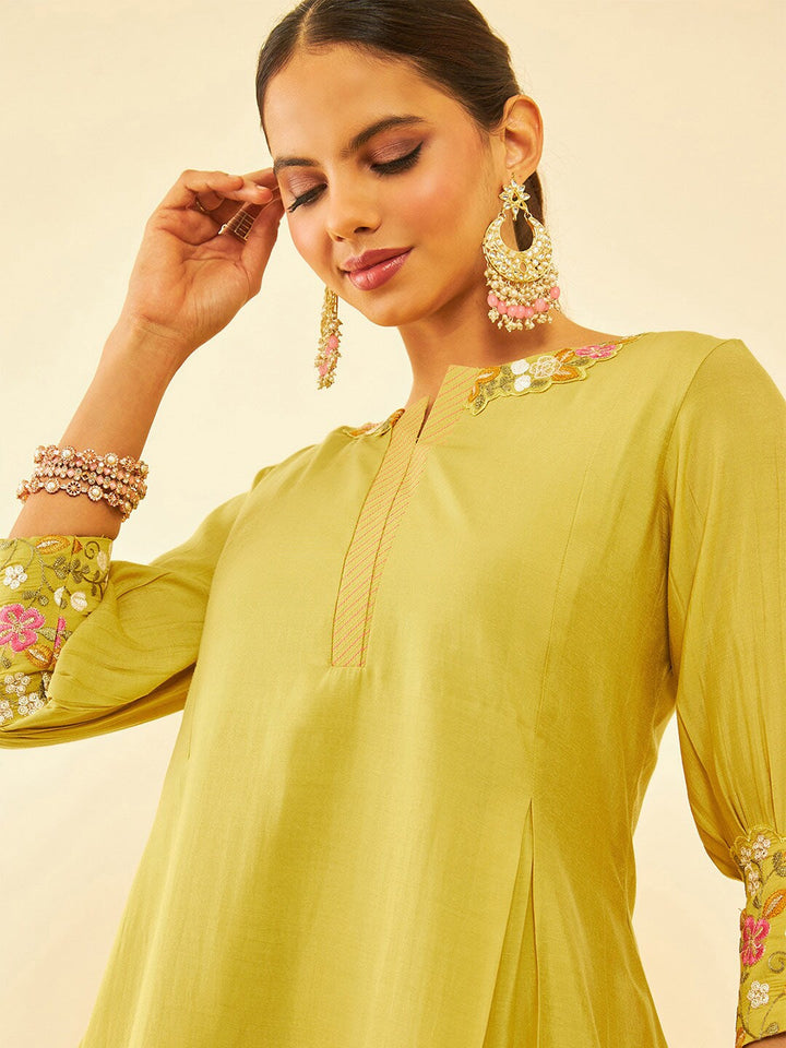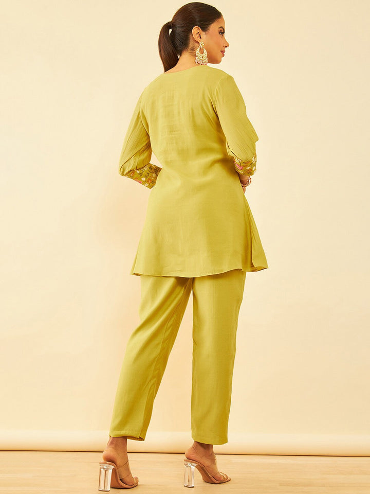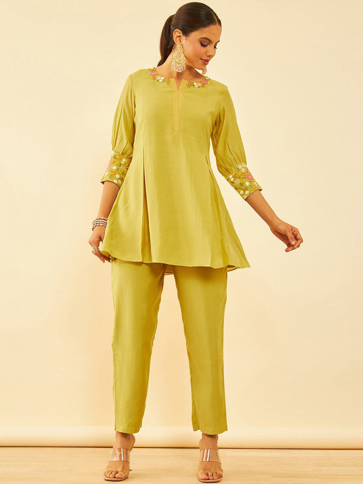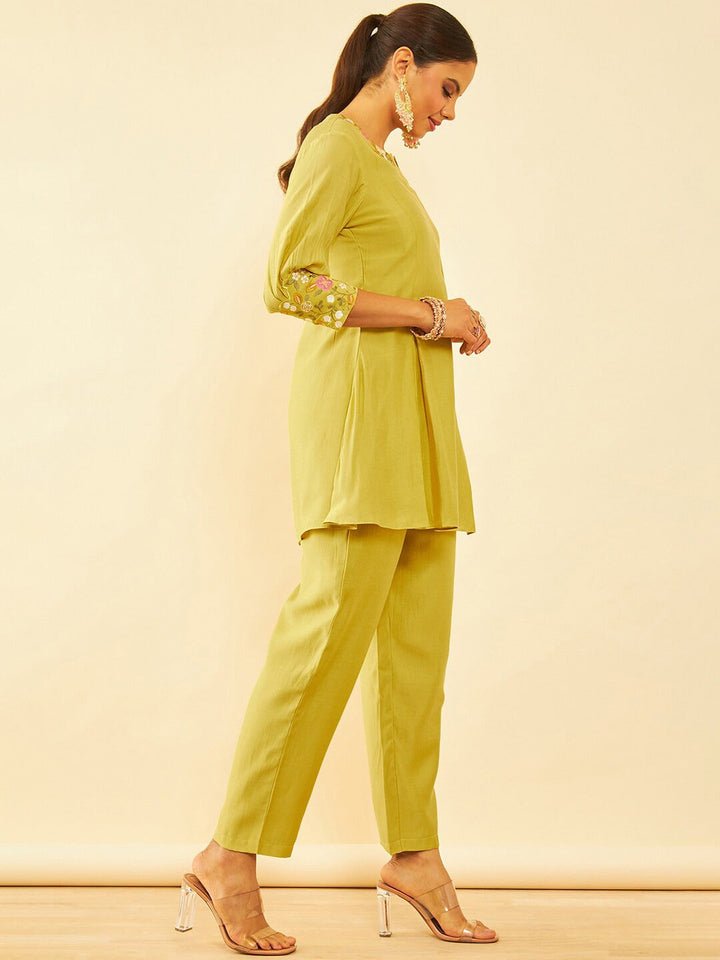 Mustard Yellow Embroidered Ethnic Tunic with Trousers