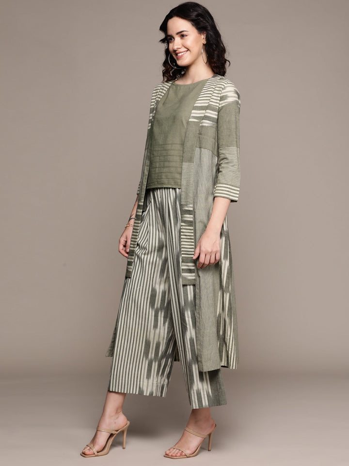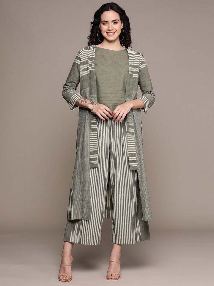 Striped Pure Cotton Top With Palazzos & With Shrug
