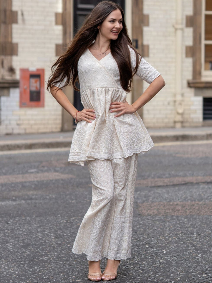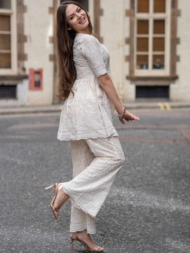 Women Chikankari Embroidered Pure Cotton Tunic & Trousers