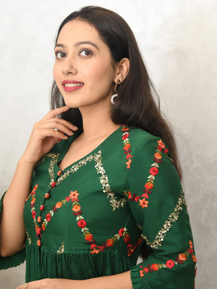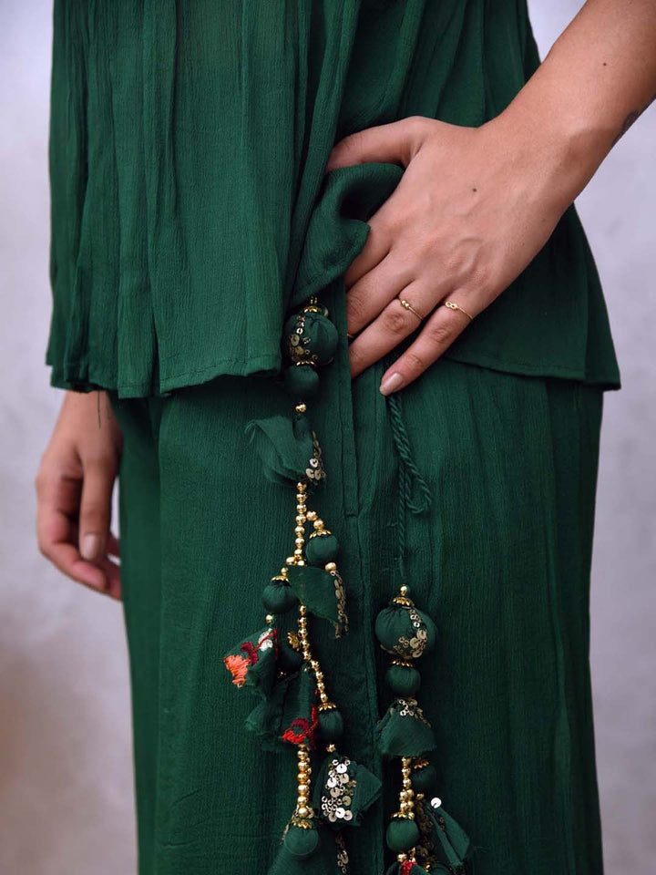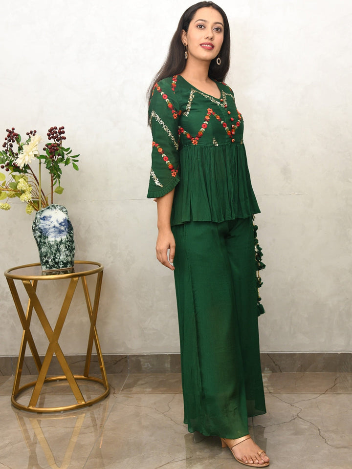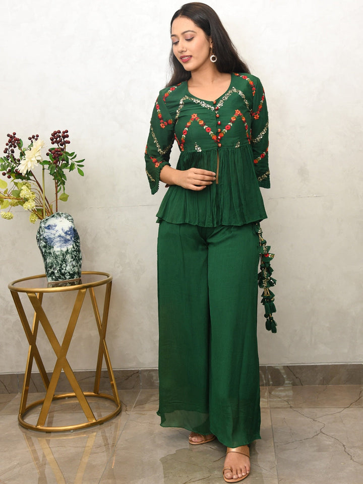 Women Green Floral Embroidered Sequinned Co-Ords